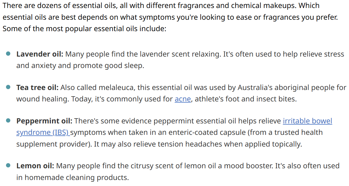 Johns Hopkins Medicine. (n.d.). Aromatherapy: Do essential oils really work? Johns Hopkins Medicine. https://www.hopkinsmedicine.org/health/wellness-and-prevention/aromatherapy-do-essential-oils-really-work