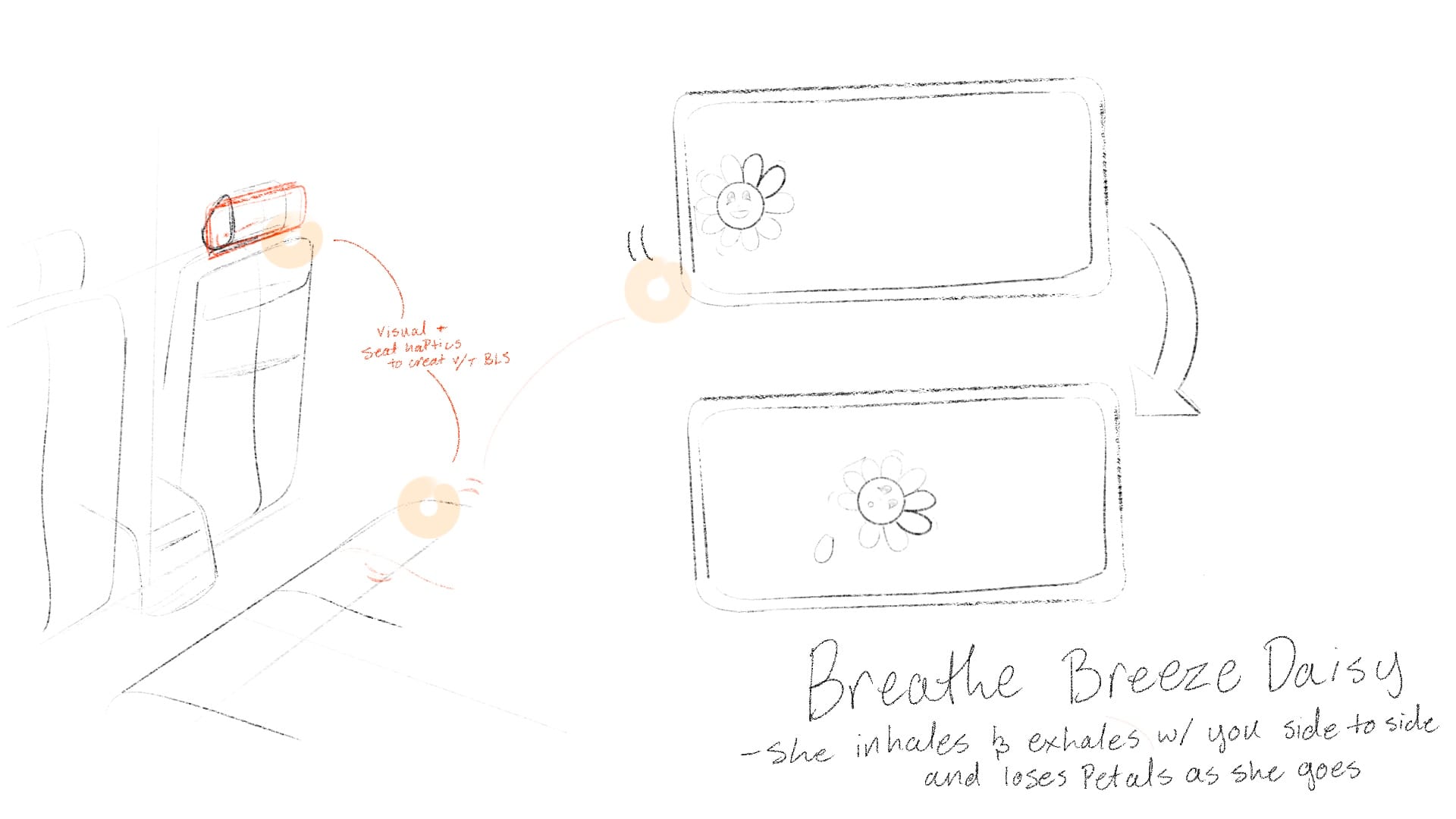 In the meantime, I have continued to consider what an accompanying visual might look like to help guide kids through this type of visual/tactile modality. The current visual is a cartoon like flower that breathes in with the user when they should breathe in, and out when they should breathe out. As this goes on, the flower is dropping petals. The goal is to stay engaged until the flower loses all its petals. The more you complete the exercise, the more petals your flower grows!