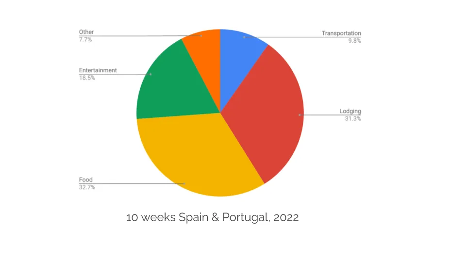 ~33% food - we spend a bit less than this normally at home with a combination of groceries and eating out! So using “traveller’s math” - does that even count!?!?😅