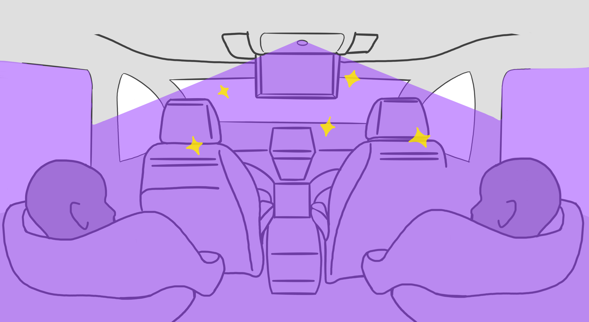 I found while interviewing parents on their experiences with children in cars that environmental elements such as other kids and the weather can greatly impact mood. Sudden negative changes can cause tantrums and derail trips. Hypothetically, creating a perfect environment that is conducive to a calm, meditative trip would reduce negative feelings within passengers. I was inspired by the "Bus Sleeping Tour" offered by Ulu Travel in Hong Kong and how they used the existing environment of a bus to relax customers (Chan et al. 2022). As such, I have proposed a slight augmentation to the existing entertainment capabilities of the Honda Odyssey that will relax users and transport them to another world.