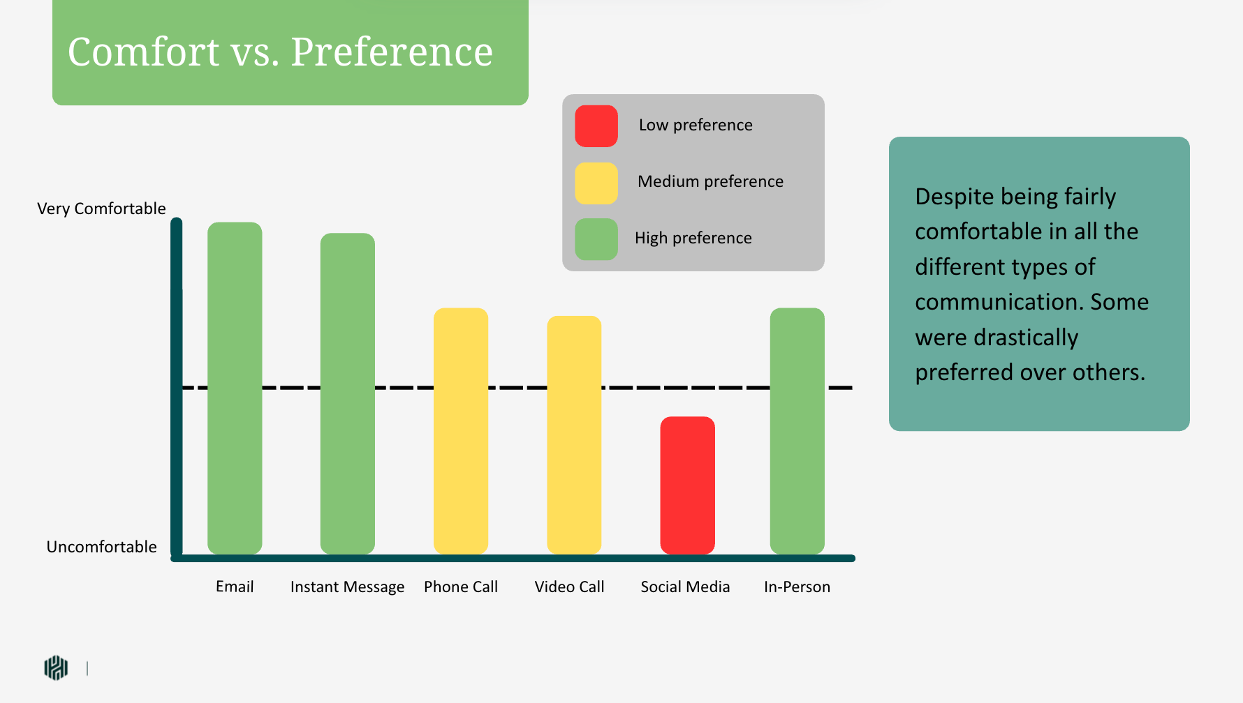 My key findings were really split into two sections, general communication and then generational comparison, which can be seen in the charts above.