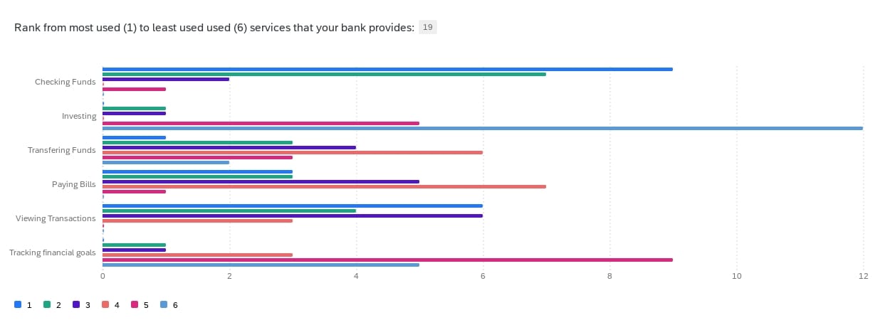 Rank from most used (1) to least used used (6) services that your bank provides: