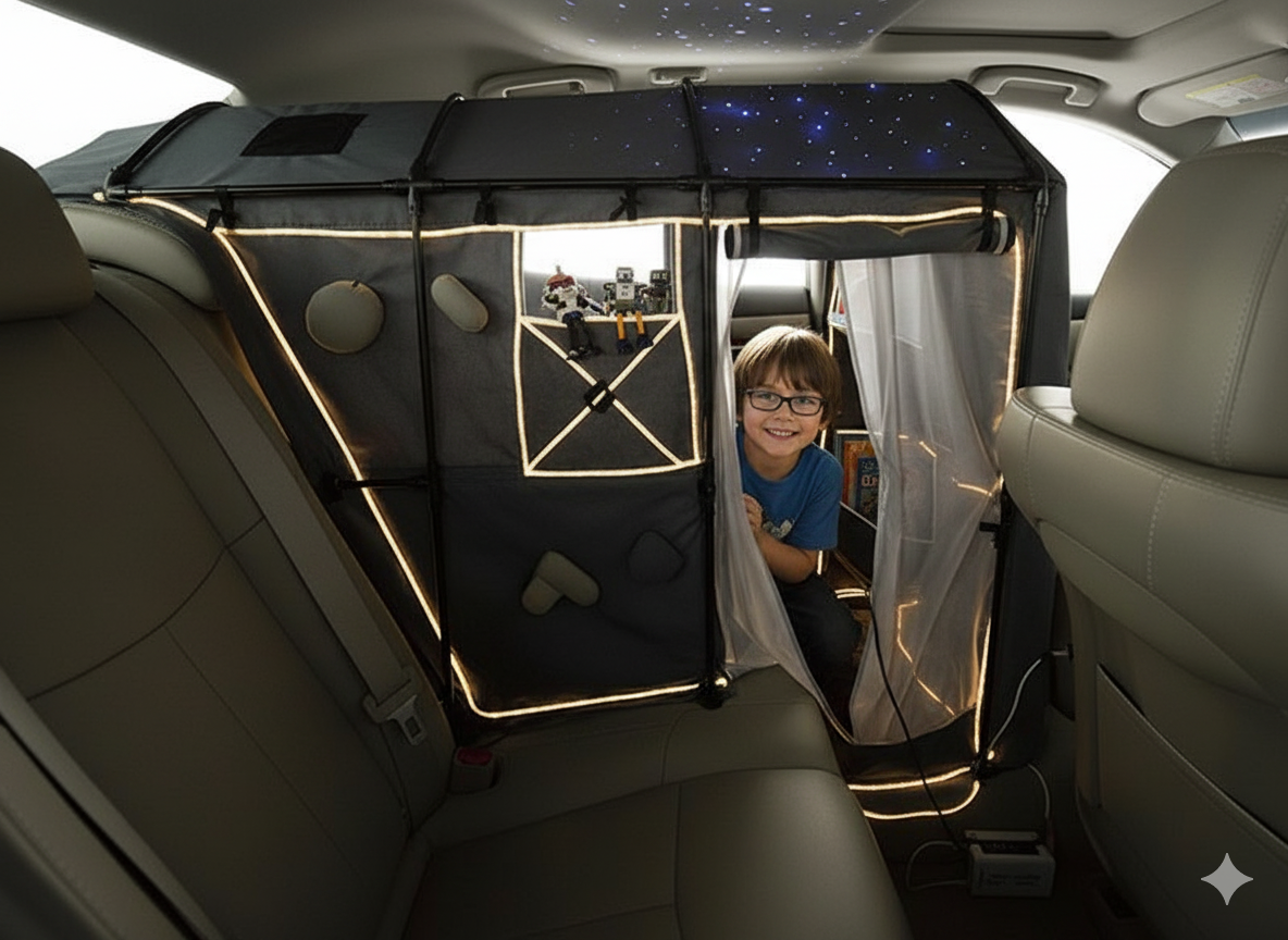 Car rides are unavoidable in family life. Children can spend hundreds of hours a year strapped into car seats or boosters. For many families this time is not peaceful and these long rides amplify feelings for families. In my Survey, parents say things like boredom, discomfort, and sibling rivalries are all things kids can let out their emotions from. A lot of parents said they often default to screens as a tool because tablets and movies can buy time. But they also raise concerns about overuse or overstimulation that leaves children wired instead of rested. The backseat chaos can distract drivers increasing the risk of accidents. Looking at cars we can see they are designed for adults(after all adults are the ones buying it) so how can I design something that can seamlessly fit into this backseat giving parents freedom and helping their child achieve this calm that parents look for on long car rides.