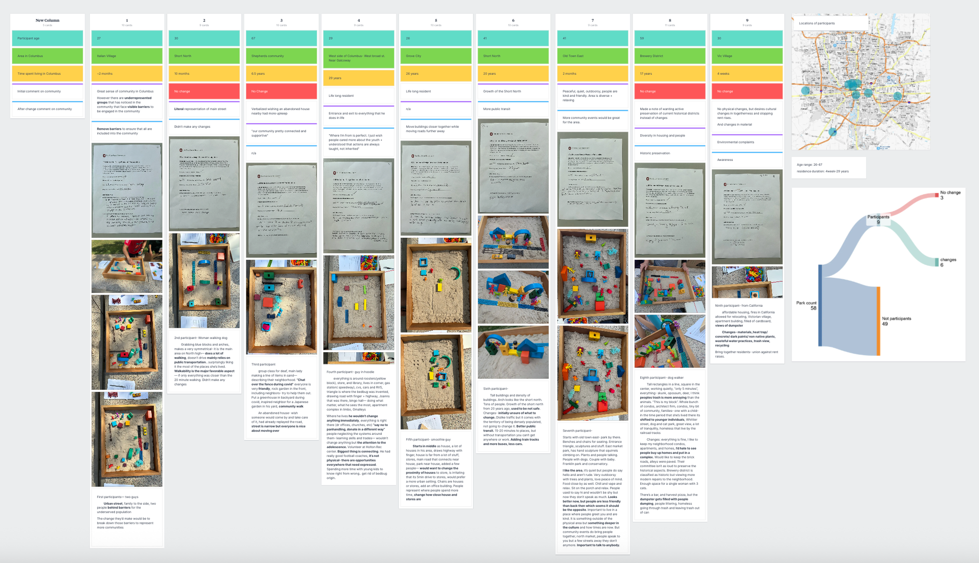 During our make-method at Goodale Park, we focused on community needs. A make-method is a type of participatory design that asks participants to "make" things that represent something. In our case, we asked them to create their neighborhood using wood blocks inside of a sandbox. We then asked them to make their idea of a perfect neighborhood and we compared the changes. Although we didn’t have any significant conclusions, I was surprised to see how strongly people felt about their neighborhoods when given the time to reflect. Our nine participants all had a lot to say - both positive and negative. I think people are more receptive to their environment than they realize. I’m not sure how this affects my project yet, but this was probably the most enjoyable research method we conducted.