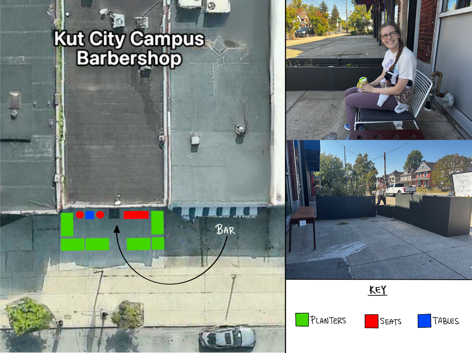 The Kut city Barbershop site visit explored some of CNDC’s past work. The added furniture and planters were found to boost community involvement, not only from the bar next door but also with OSU students/fans around football season. The adaptable pieces were very useful for engagement, and I wonder if similar artifacts made from recycled materials could create building blocks for future projects.