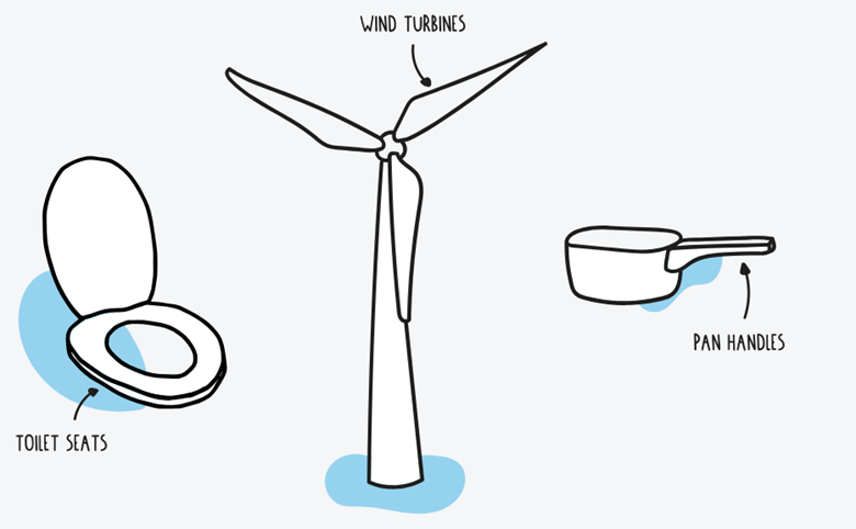 The Local Loops team is primarily interested in thermoplastics, since they are the more appropriate polymer category to be used in a circular economy. Marble Plastics manufactures their products using HDPE (plastic #2), and Polystyrene (plastic #6).