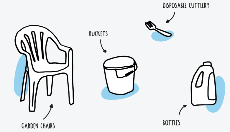 PS is most commonly known as Styrofoam, but also appears in many more products. PS can be recycled, but not efficiently - recycling it takes a lot of energy which means that few places accept it. Disposable coffee cups, plastic food boxes, plastic cutlery and packing foam are made from PS - it works very well with Precious Plastic. It is one of the more toxic plastic types (so special attention please!), but at the same time offers great aesthetic and haptic properties as it is comparable with glass and can be polished.
