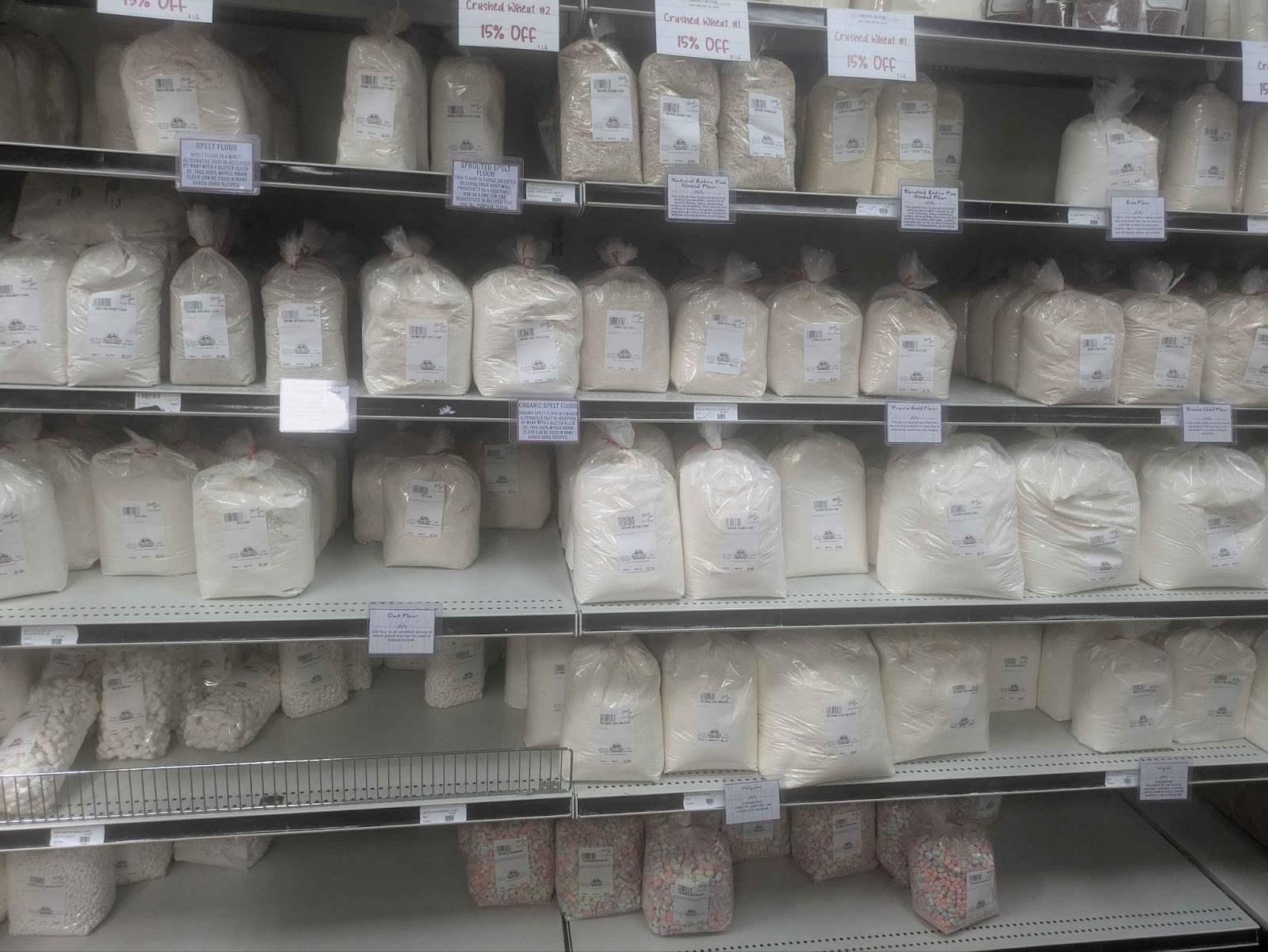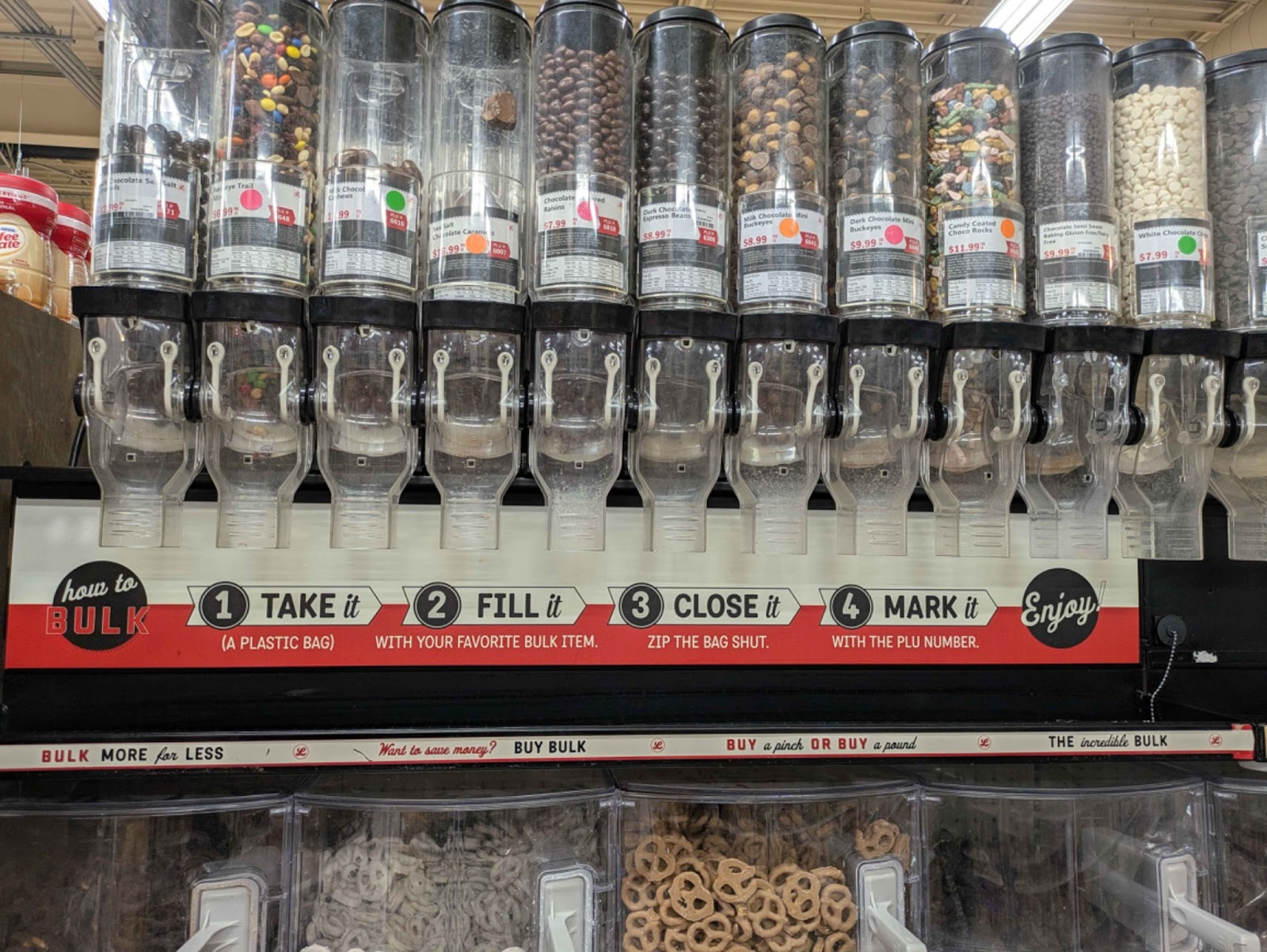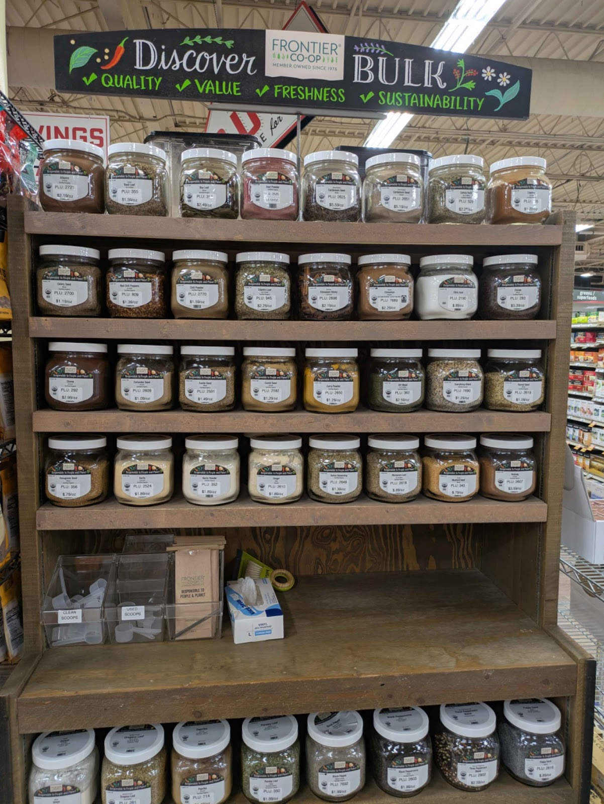 One very unique system is the Bulk Buy section. Loose products such as nuts, dried fruits, rice, spices, and more are available for customers to fill their own desired amount. This helps to cut down on excess plastic used in most product packaging, but it can be confusing for new customers to figure out.