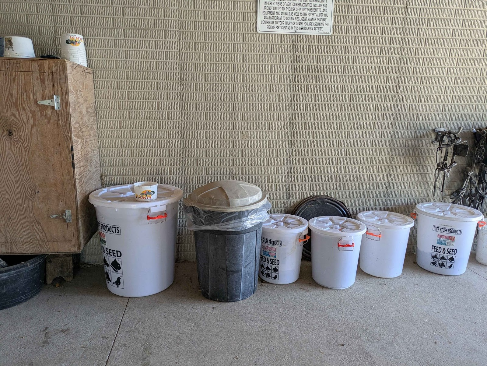 The animals on site range from classic farm staples like roaming cattle, to exotic birds and even giraffes and zebras. It is important to acknowledge that this farm is open to the public, and many things are in place as part of an experience to draw in guests. This being said, there are many animals on site that have functional purposes. For instance horses are used to pull carriages and perform labor. Chickens, cows, and goats are all serving classic farm roles producing eggs, milk, or meat. The stranger animals, like llamas and deer could contribute in similar roles, but giraffes and zebras are present for purely entertainment purposes. The role of the exotic animals tended to function more like a zoo than a farm in certain aspects. Notably, the feed containers that guests could buy to interact with the animals were reusable and collected at various drop-off points once empty to be refilled and redistributed to future guests.