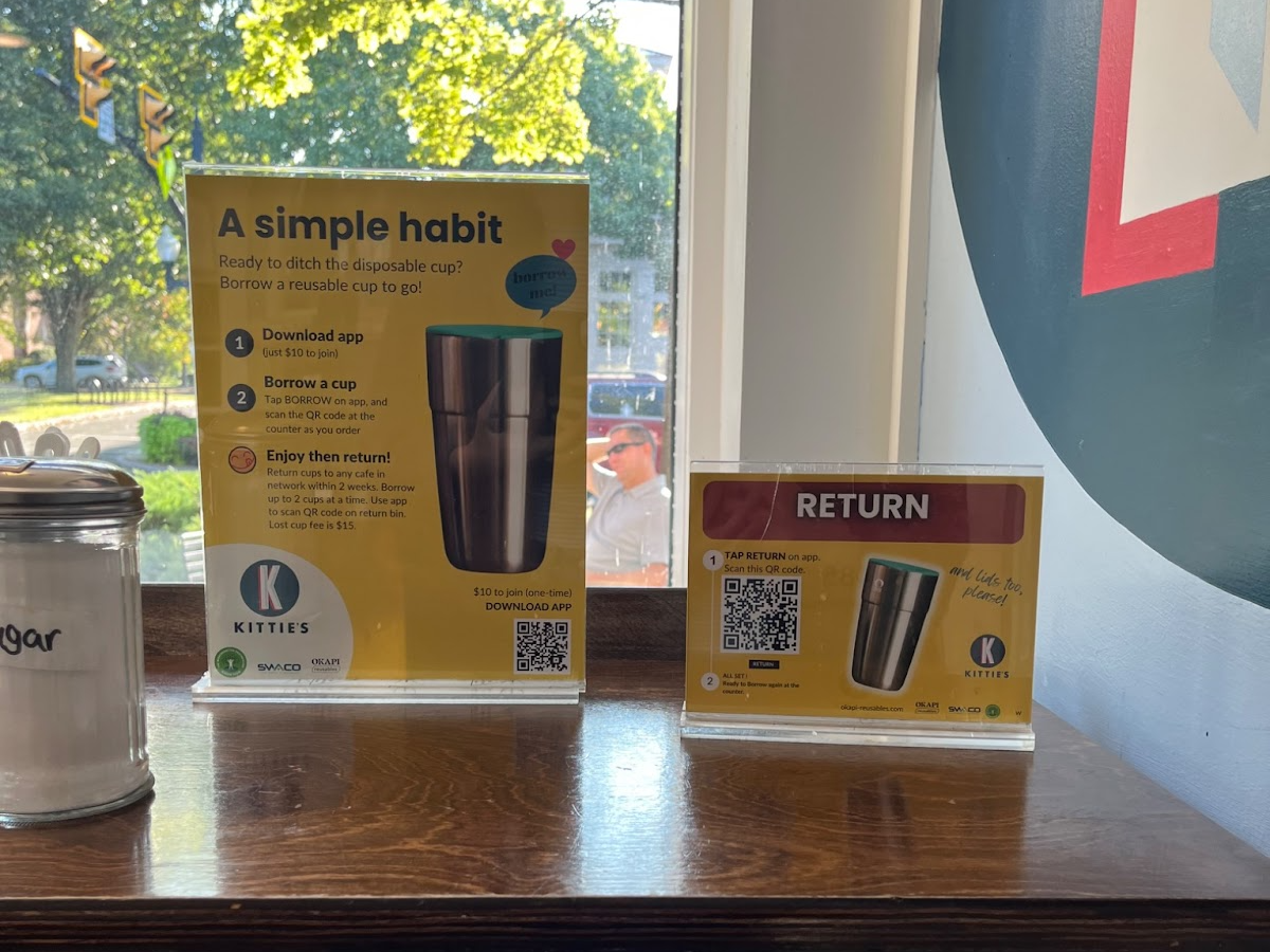 I started my morning with Kitties café in Worthington, where the barista helped me through the process of downloading the app and then scanning the “borrow” QR code when ordering. The app is pretty straight forward which I think is intentional because asking someone to incorporate an extra step in their morning routine could be a deterrent from participating. After conversing with the barista she shared that they’d been participating for around 6 months and she has noticed that participation has slowly ramped up. The process hasn’t interrupted their work flow much because besides having to wash a few more items they just keep the stainless steel tumblers in a cabinet behind the counter. After I received my coffee I took a seat and observed for roughly 2.5 hours. I didn’t witness any people participating directly in the program itself with the 72 people I counted that came in that morning. However there were a handful of people that brought their own tumbler to be used which I thought was interesting.