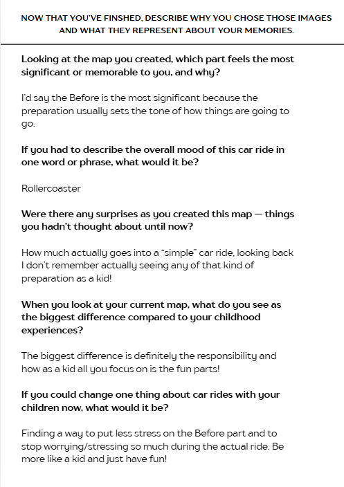 - Imagine the “ideal” family car ride; what would it look, sound, and feel like for you and your children?