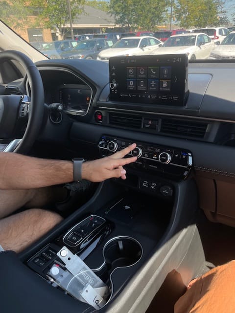 The images above document a visit to a Honda dealership, where my group and I explored the features currently offered in Honda vehicles. In the Pilot, Passport, and Odyssey, we tested climate control and airflow settings, reclining and adjustable seating, storage capacity, speaker performance, overall comfort, and more. What stood out most were the newer technological capabilities; such as the overhead backseat camera, which provided the driver with a panoramic view, and the speaker system that projected voices from the front to the back. Additional noteworthy details included elevated backseat pouches designed to hold tablets and phones at eye level, as well as visually appealing patterns and subtle textural elements, particularly in the Passport’s center console. This early exposure to Honda’s existing features helped establish a baseline for my research, highlighting both strengths to build on and opportunities to expand creatively, especially in the realm of ambiance.