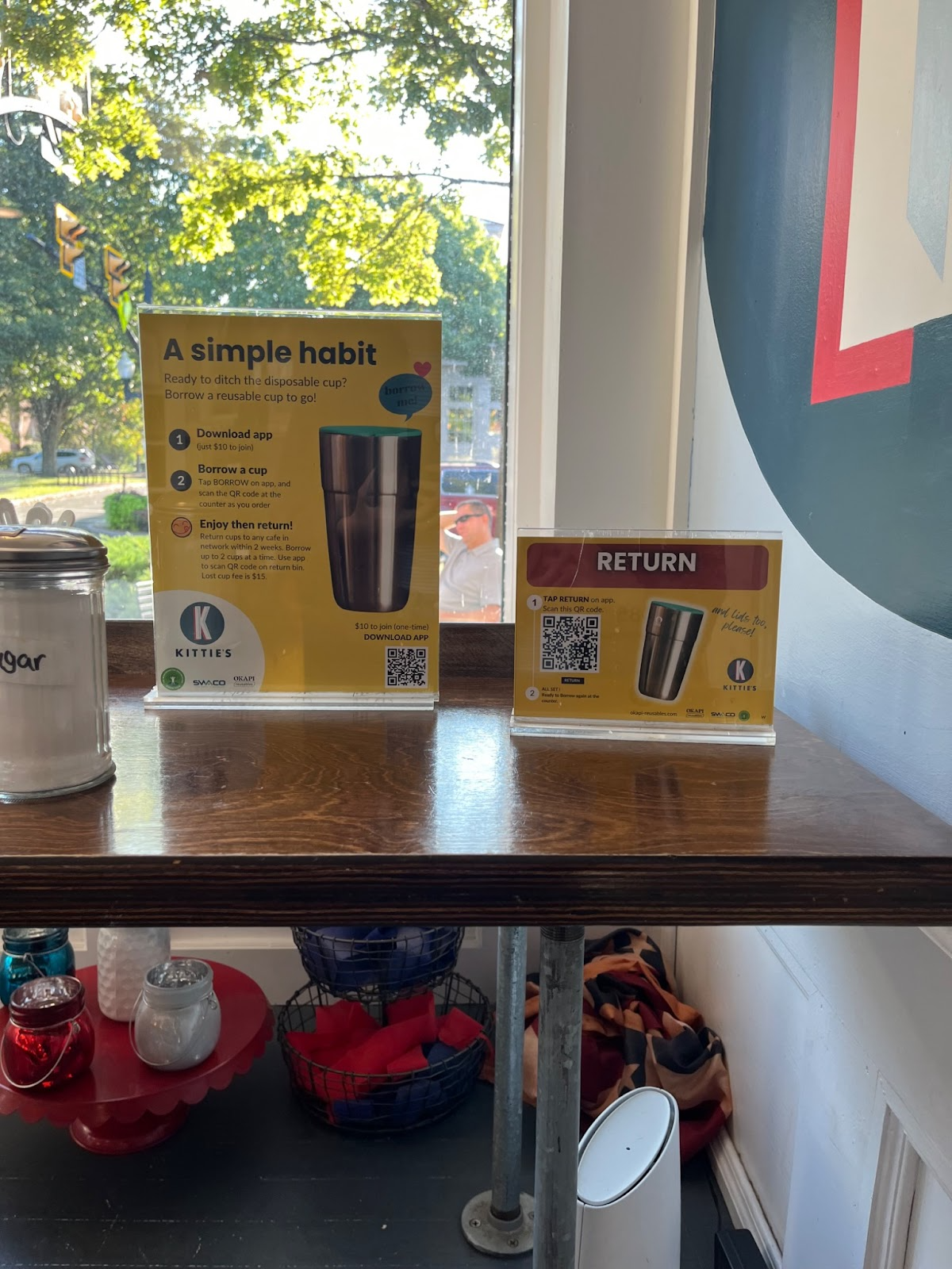 In the afternoon, I looked on the app to see the list of participating cafes and went to The Light Meeting House to see how the return process would go. With a washed tumbler in hand to return, I had a nice conversation with the owners. They had only been part of the program for a week and hadn’t put up the signs or QR codes yet and brought it out from the back. They excitedly said that I was the first to come in and participate. My expectations were lower of seeing another participant since they were so new, and the cafe was slower with it being the afternoon. However, of the few patrons that came in while I was there for about an hour and a half there was a person who came in and had their drink put in their own tumbler. There seems to already be an unspoken level of circularity among some cafe goers, which helps towards the pilot program's goal of reducing the amount of disposable cups. How could this program reach more people, and is the paywall preventing more engagement when you could just bring your own tumbler?
