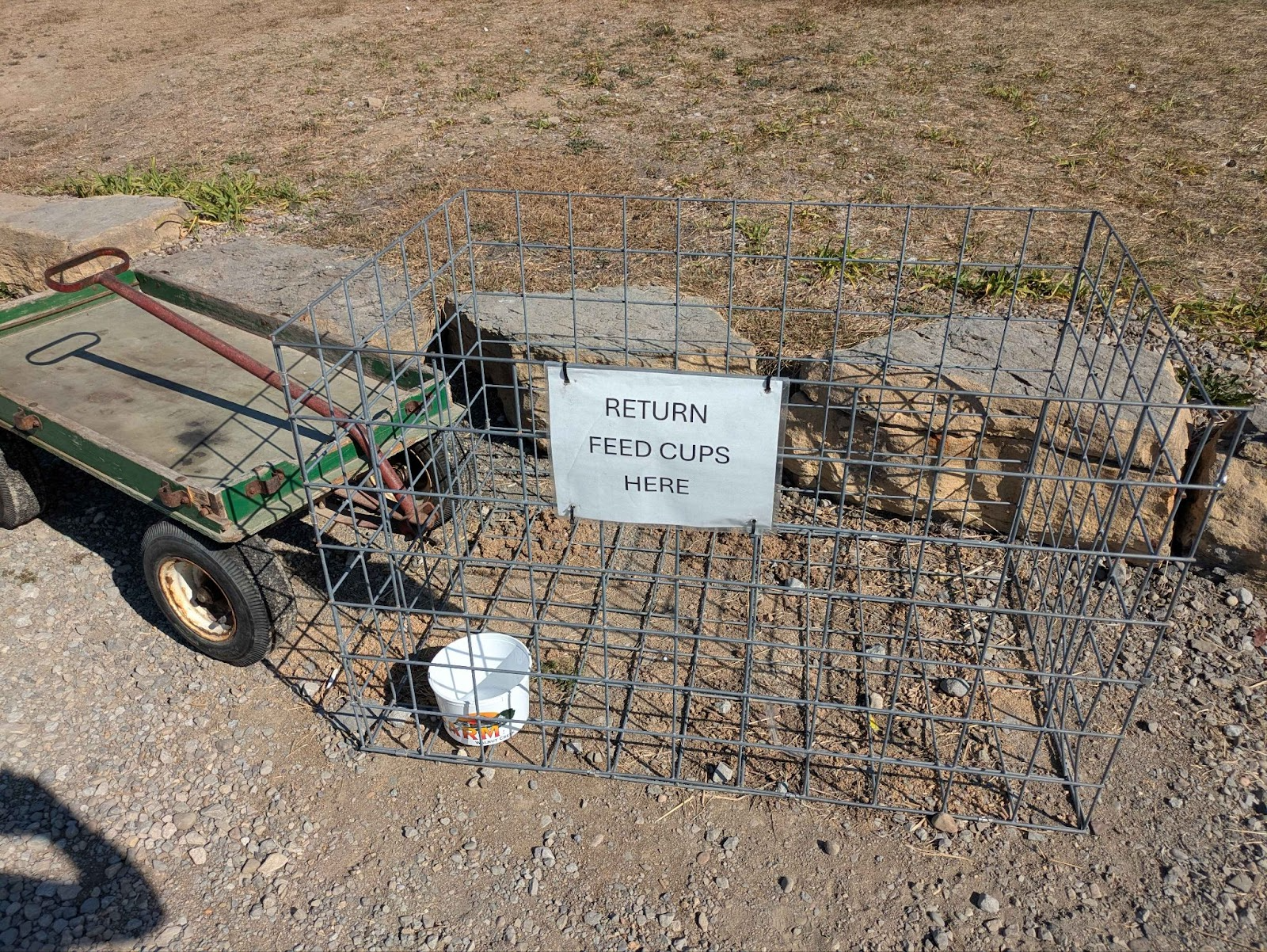 Pictures of reusable plastic buckets at the farm