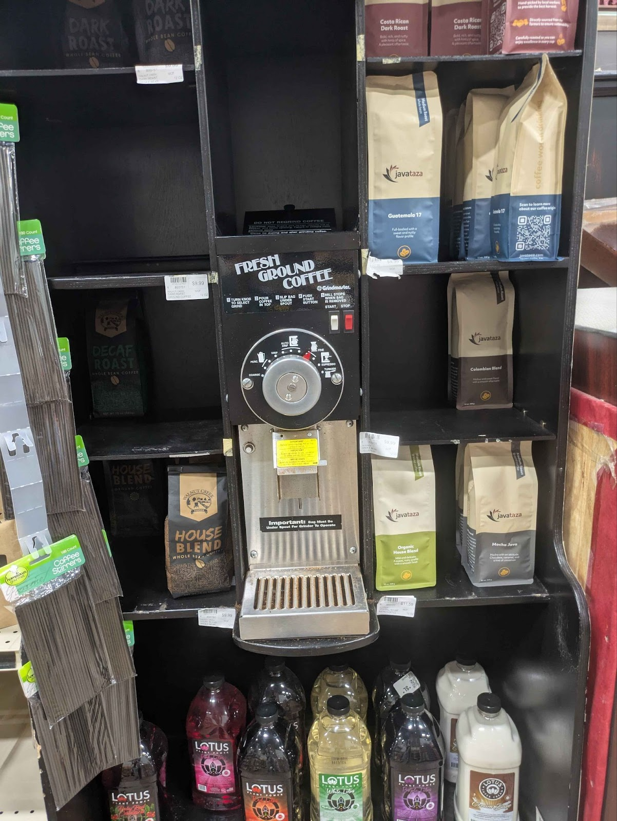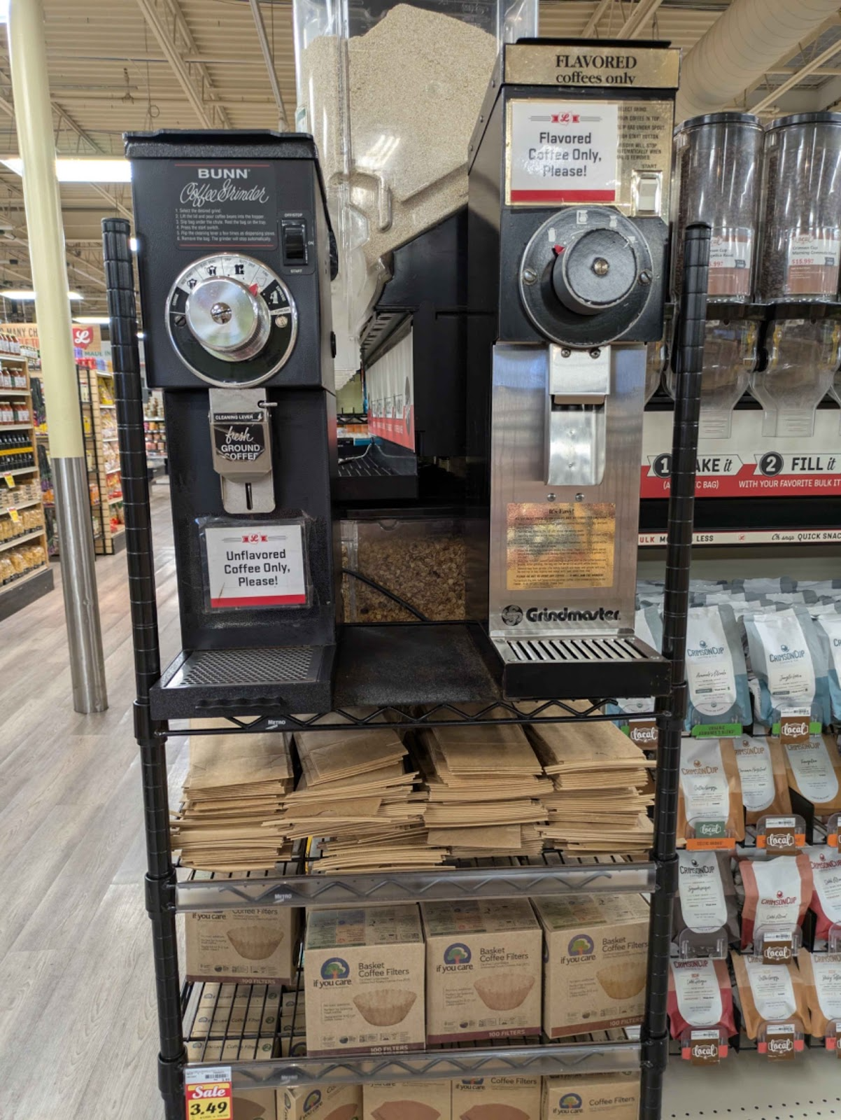 However, there were some interesting systems that broke out of the normalized grocery experience. One example is a coffee-grounds machine where customers can refill their own bags of fresh coffee.