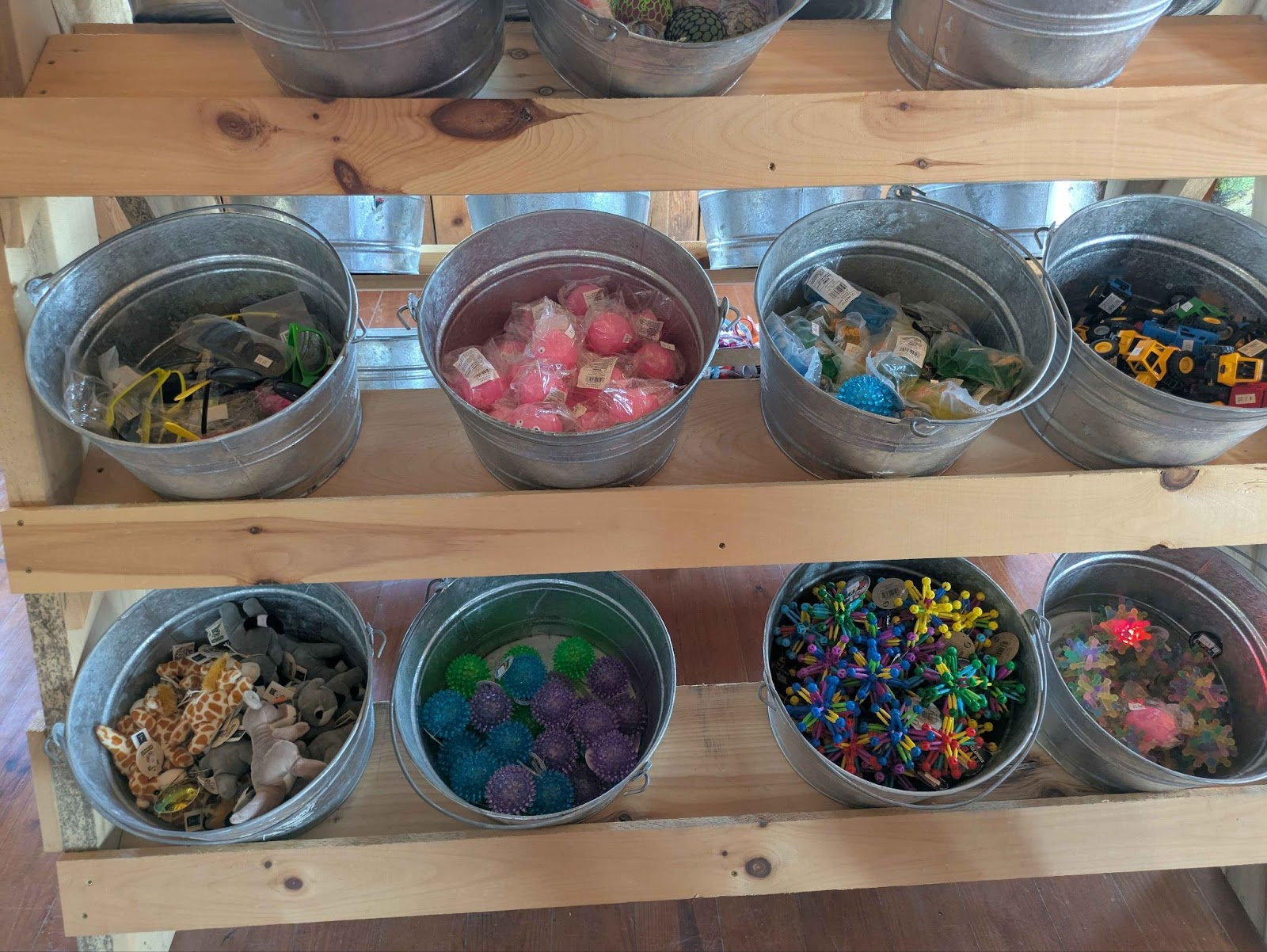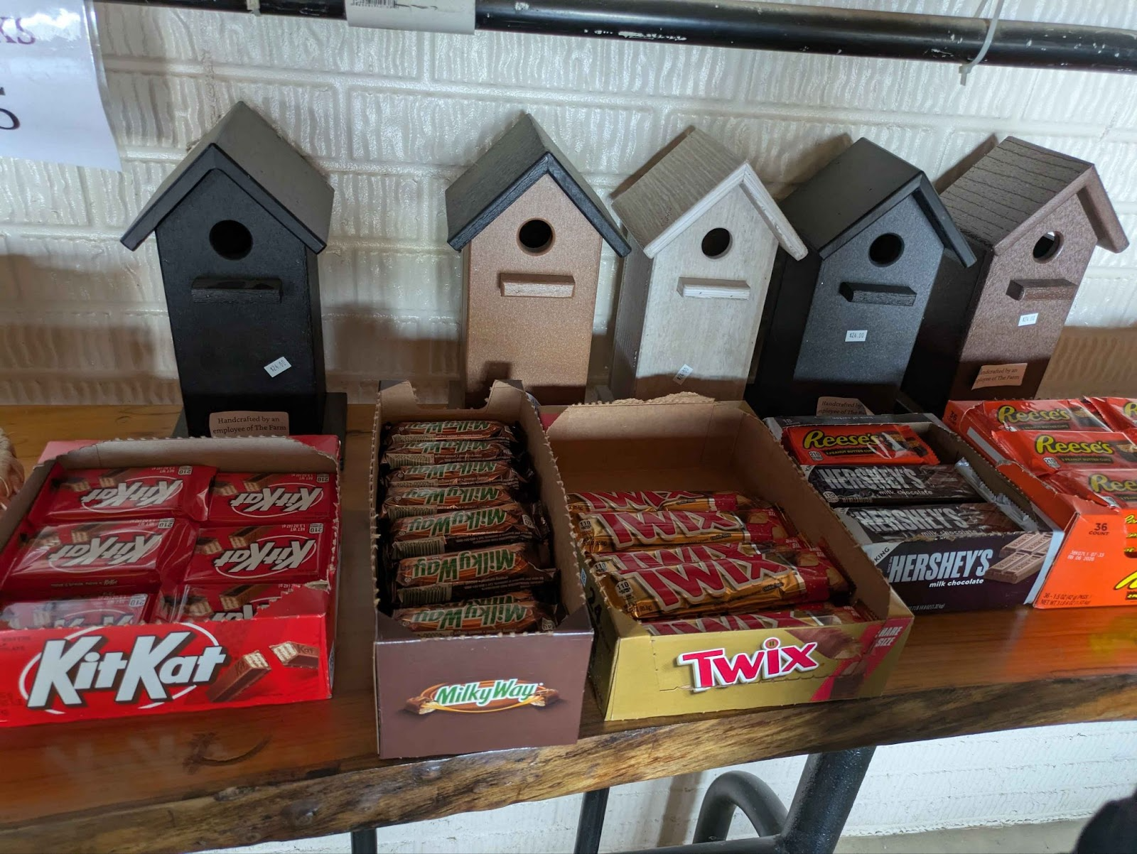Something interesting is happening in the Farm gift store, where this shift of material and craft comes to a head. The products are being held on wooden shelves with metal buckets, which matches the other furnishings. Inside these buckets they are selling a lot of plastic things, some with disposable packaging, and other items that are homemade. It can be a whiplash to see artisan maple syrup with hand written tags next to the mass market Twix bars. The gift shop stands out because this is where the company is most trying to catch the interest of their non-Amish guests, and this can be seen in the products on sale.