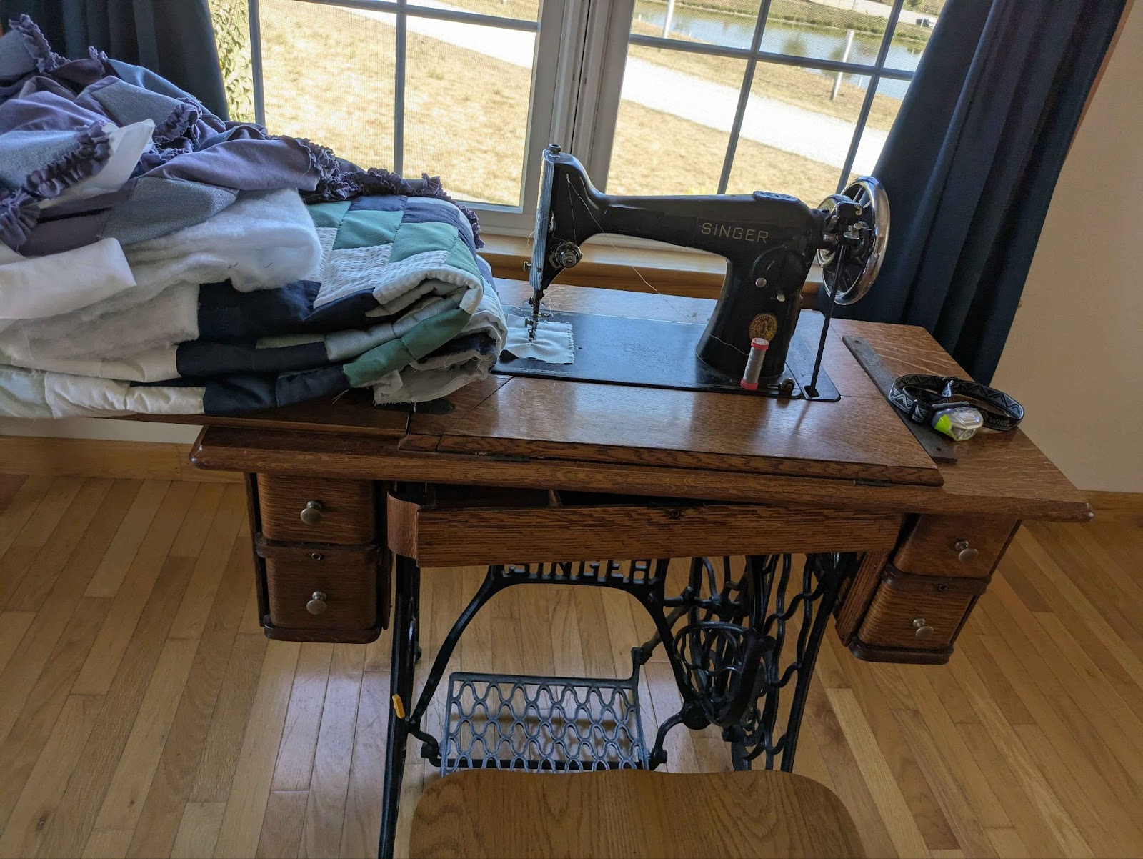The house itself was open to be explored by guests. Certain aspects were functional for the workers, while some were in place like an exhibit for guests. Materially, all the furnishings were hand-crafted wood from tables to chairs and the quality of the craftsmanship was easy to see. Mock-bedrooms also had wood crafted bedframes, with quilted blankets. An original singer sewing machine was in the middle of a quilting project. Even the public bathrooms had tin stalls for separation, instead of the usual plastic walls. It was easy to see these timeless materials and practices everywhere you looked, even the wooden floors. There was some interesting creep of modernism when taking a closer look, namely the houses themselves. The patios, and stairways leading up to the house, and some railings were new and shiny white made of some sort of plastic material common in newer homes. They were hollow inside, and the material difference was noticeable.