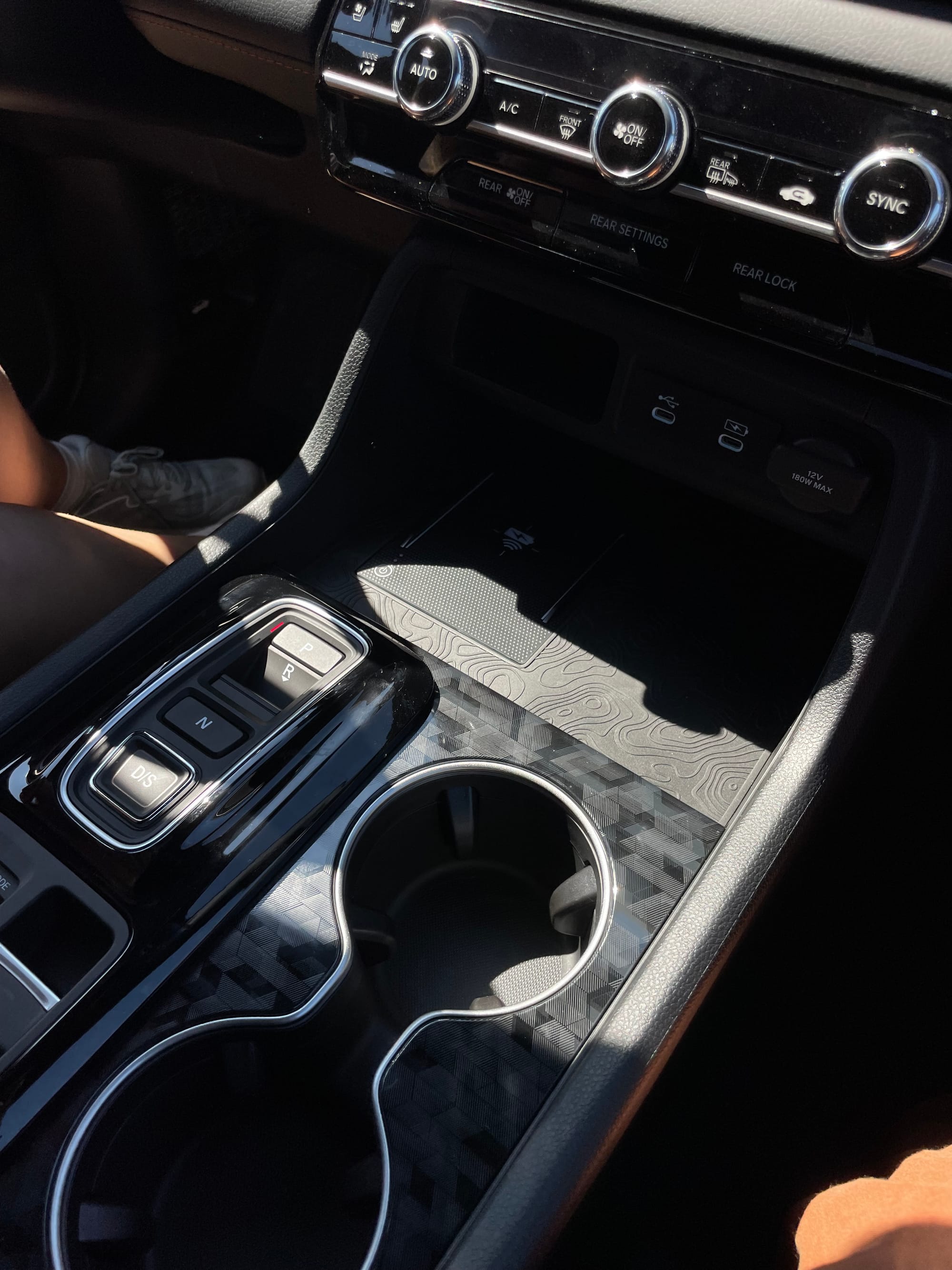 Going into the front seat features, I noticed there being screens in every car. It felt very mandatory that there had to be screen in these cars. I also noticed a lot of buttons on the center area ranging from front seat controls, audio, temperature and back seat temperature. Noticed a lot of charging ports and ever wireless chargers.