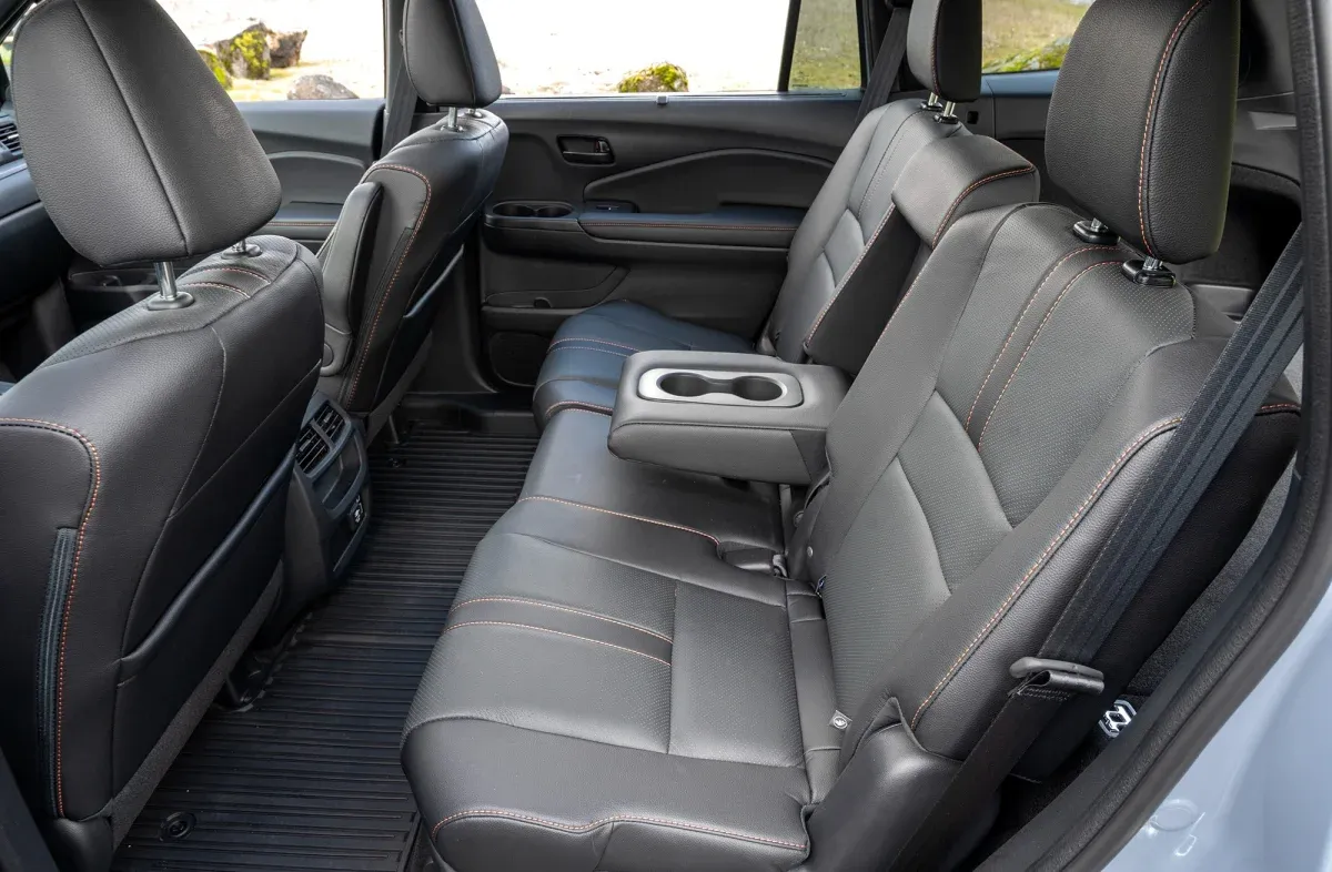 The next car interior we looked at was the Honda Pilot. This felt like a shrunken version of the Odyssey. There was less room, fewer features but there still was a third row. Seats were very comfortable and the black interior with white accents made it feel very comfortable. There was a lot of storage behind the chairs and we felt like the ergonomics of the chairs were very comfortable.