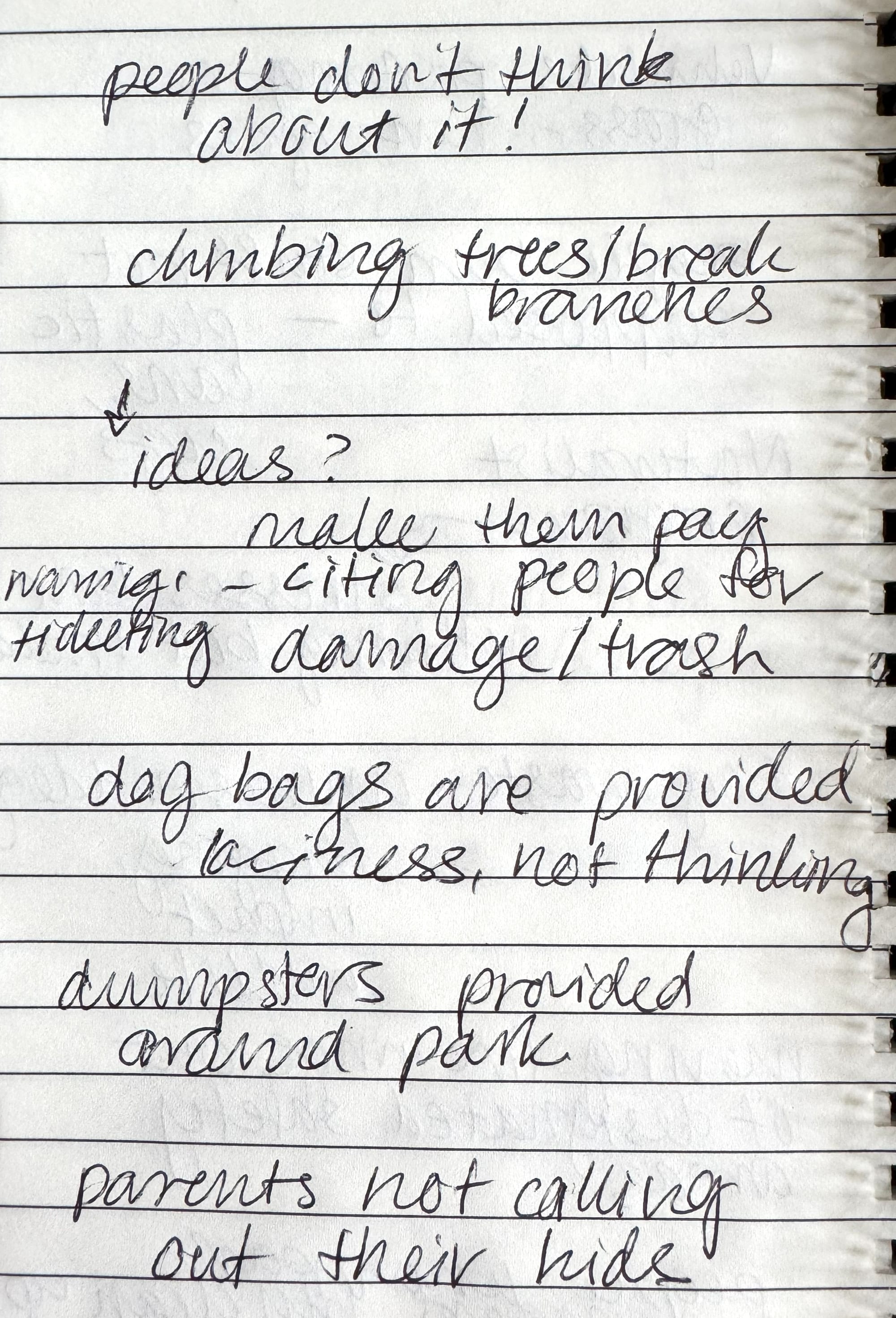 - How could we remind people that there's wildlife that lives in our parks and encourage them to be more mindful of this fact? It's not just a playground for humans.