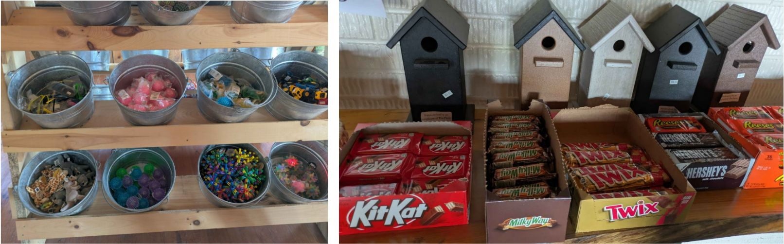 Something interesting is happening in the Farm gift store, where this shift of material and craft comes to a head. The products are being held on wooden shelves with metal buckets, which matches the other furnishings. Inside these buckets they are selling a lot of plastic things, some with disposable packaging, and other items that are homemade. It can be a whiplash to see artisan maple syrup with hand written tags next to the mass market Twix bars. The gift shop stands out because this is where the company is most trying to catch the interest of their non-Amish guests, and this can be seen in the products on sale.