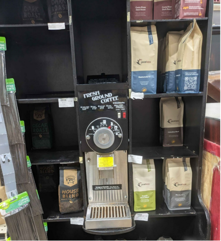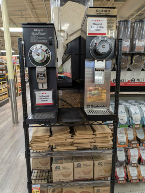 However, there were some interesting systems that broke out of the normalized grocery experience. One example is a coffee-grounds machine where customers can refill their own bags of fresh coffee.