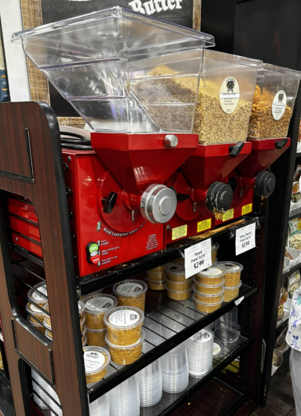 There is also freshly made in-house peanut butter and almond butter. The machines are available for customers to fill and refill old containers. They are stocked with peanuts and almonds. This drastically cuts back on the single use jars that peanut butter is usually sold in.