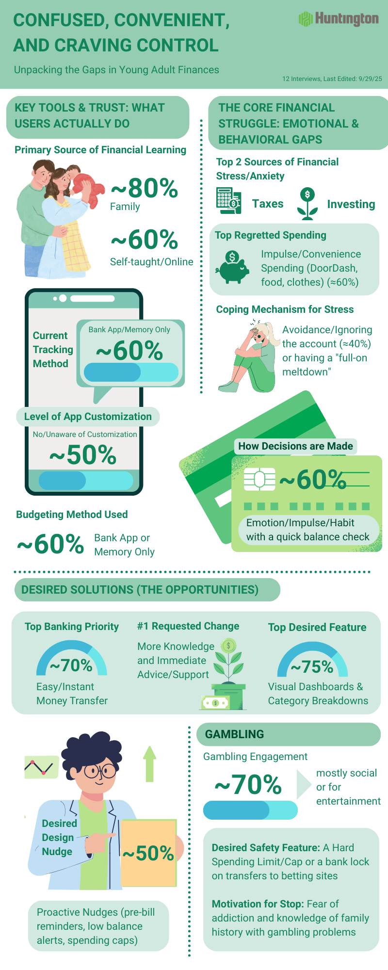 These findings suggest that Gen Z could benefit from tools that simplify financial management, increase transparency, and reduce stress. Solutions that promote regular tracking, offer guidance, and build confidence may help them feel more in control while gradually gaining independence.