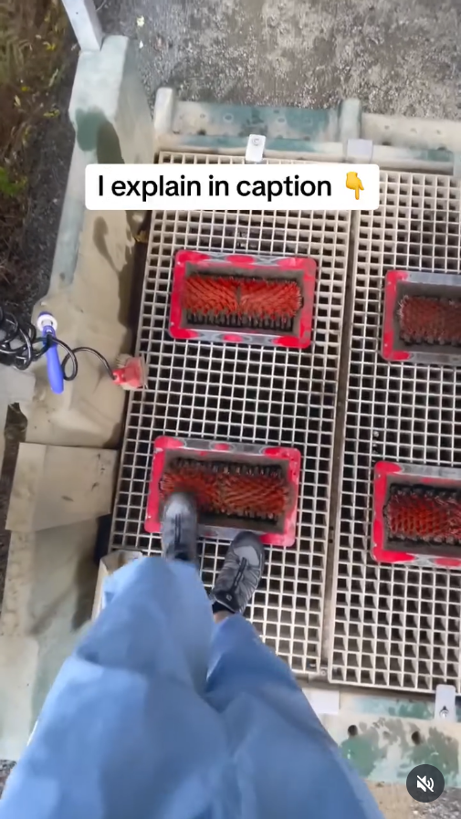A shoe cleaning station in New Zealand (shown below) takes a similar, but more insistent approach. Whereas the Australian one keeps it easy to avoid cleaning your shoes, the New Zealand station blocks the entrance entirely and requires visitors to clean their shoes on the way in and out. According to @100newzealand on Instagram (2024), the stations are widespread. Instagram user Luca Cupido, @lukedrummer99, (2024) points out a potential issue--how effective are the shoe cleaners if they aren't kept clean themselves?