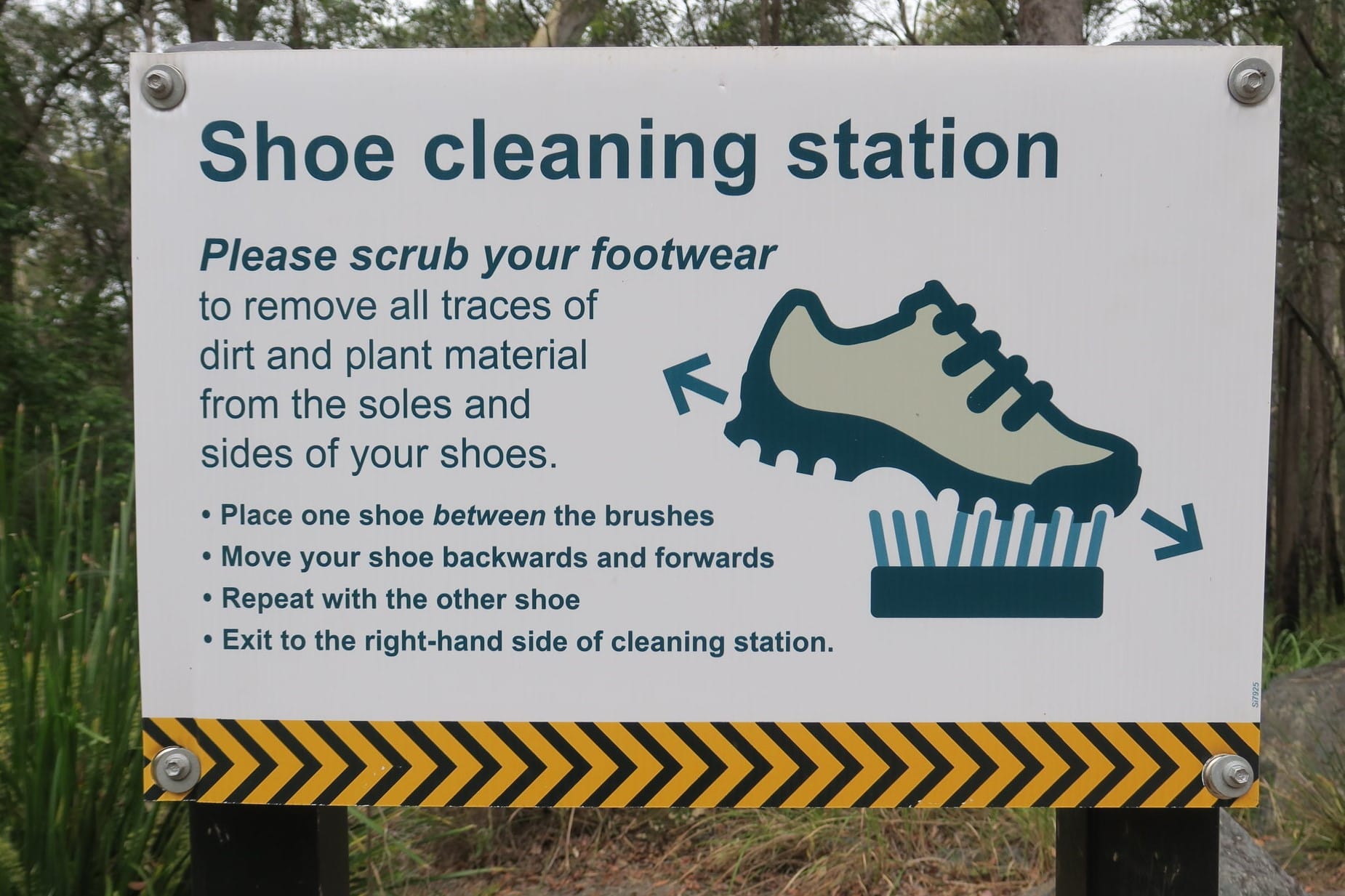 At a national park in Australia, shoe cleaning stations, in combination with signage and educational sessions, have been installed to prevent the spread of the highly damaging plant disease phytophthora, which spreads through infected soil (Sunshine Coast News, 2024).
