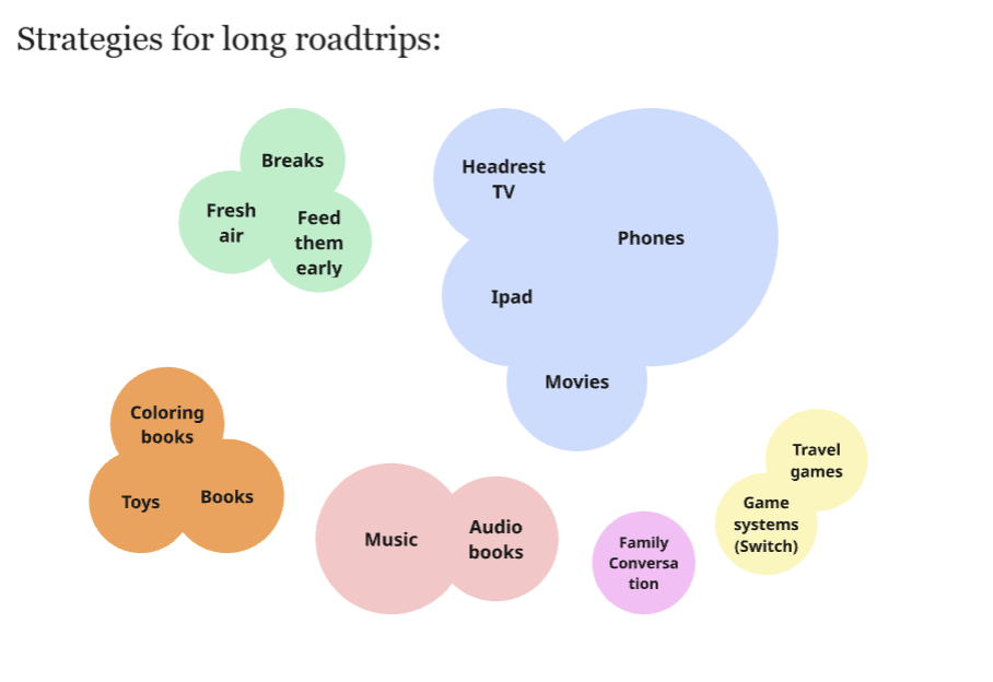 Additionally, what are strategies these parents use on long road trips to help their back seat youths feel more at ease? Phones remained a top answer, but additional responses included books, toys, music control, and breaks.